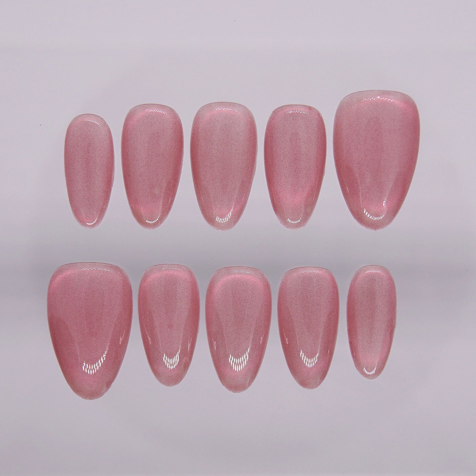 Soft lilac cat eye press-on nails with dreamy shimmer.
